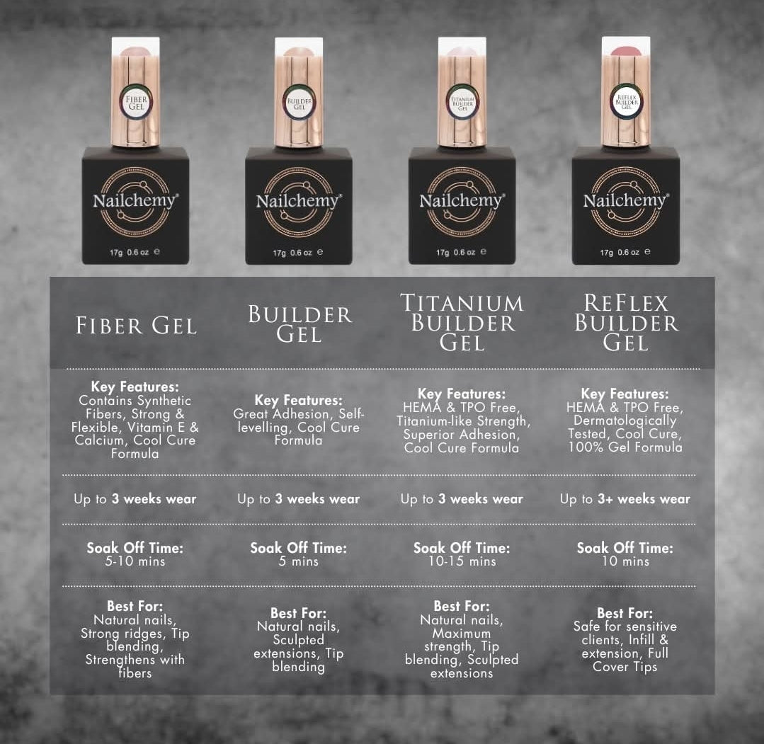 Structure Gels include Fiber Gel, Builder Gel, ReFlex Gel, and Titanium Builder...