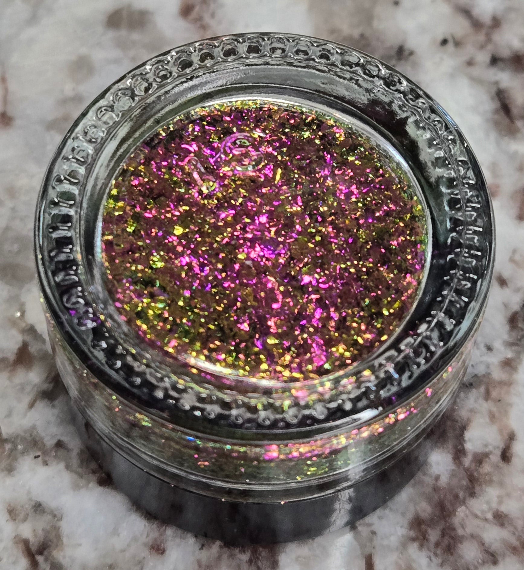 Add Chameleon Flakes with a brush to the inhibition layer of your gel for a Chunky chameleon effect.