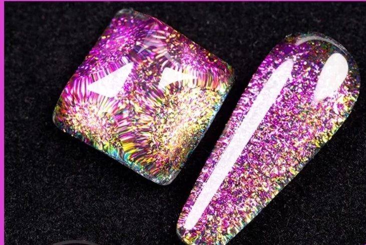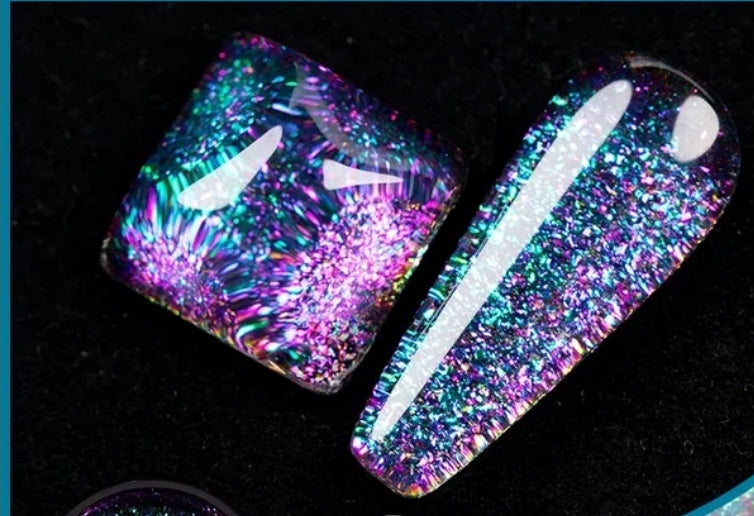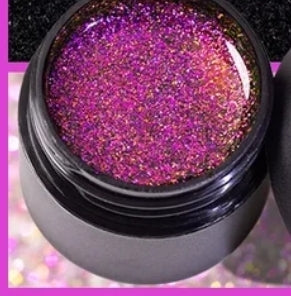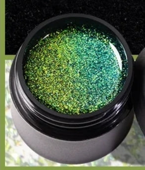 These gel pot colors are stunning with extreme multichrome effect, shifting color in different angles of light with prismatic chameleon flakes.