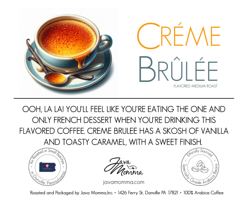 Creme Brulee has a skosh of vanilla and toasty caramel, with a sweet finish. Flavored Medium Roast