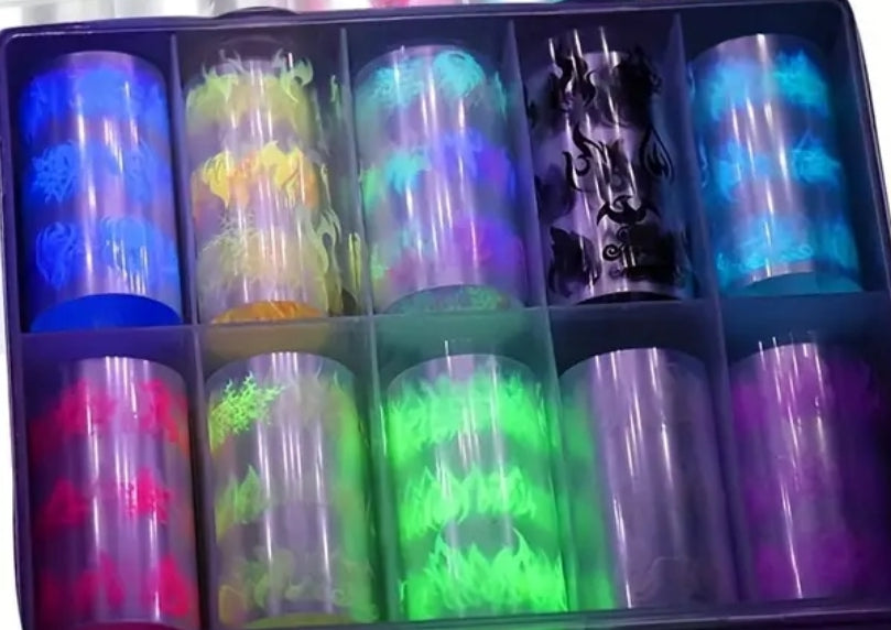 Enhance your nail art with our Foil Flames. These glow in the dark foil transfers feature a fiery flame theme, adding a unique touch to your nails. Stand out in the dark and make a statement with our high-quality foil.