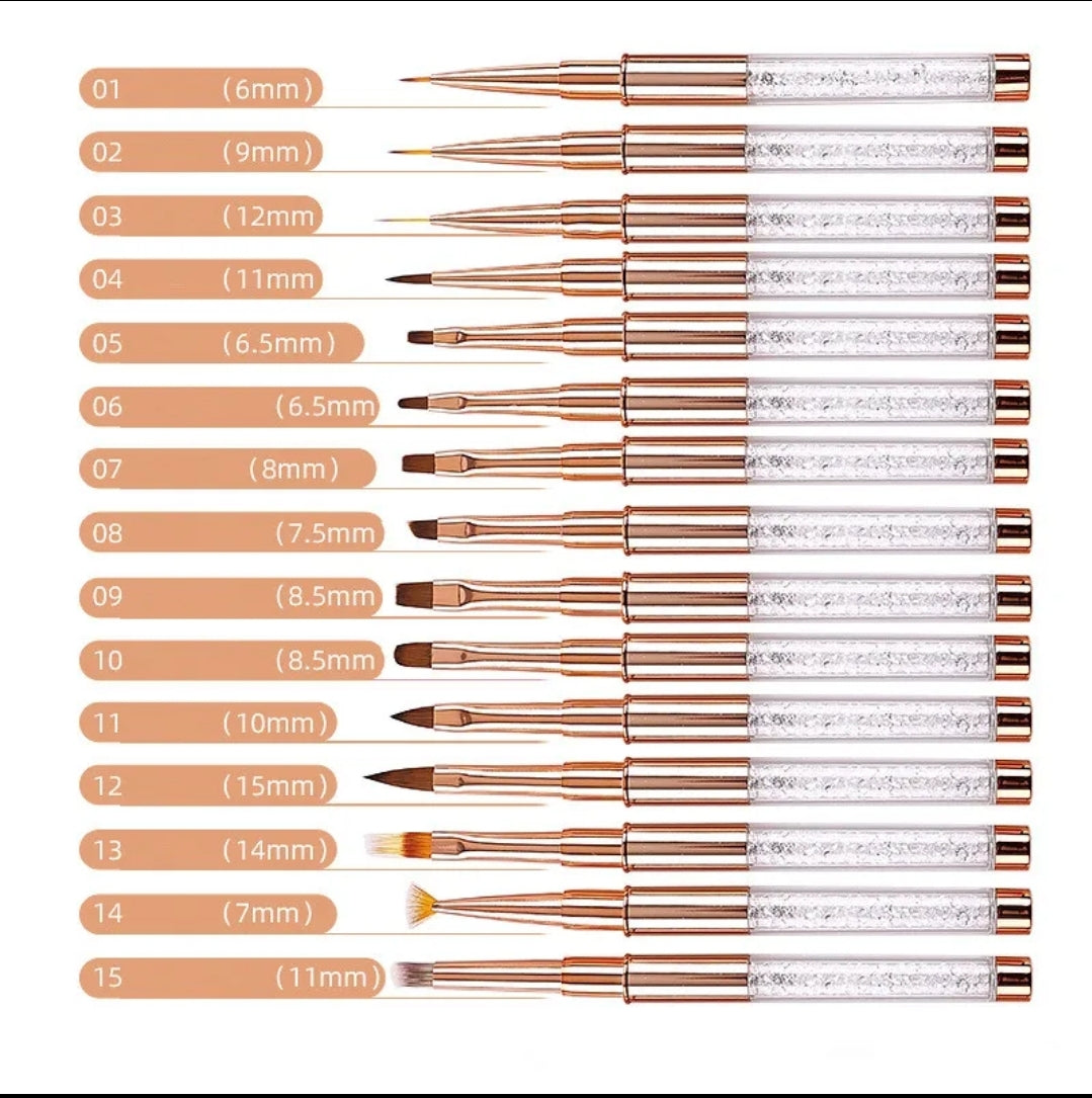 Rose Gold and Crystal Detail Nail Art Brushes with Lids